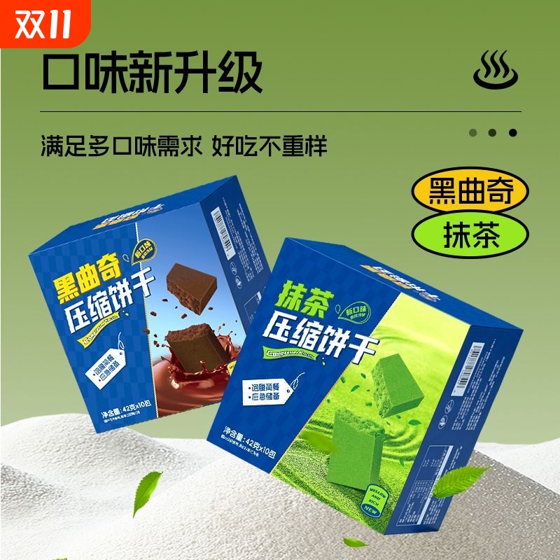 压缩饼干抹茶黑曲奇代餐饱腹充饥解馋零食品小体积大能量应急好吃