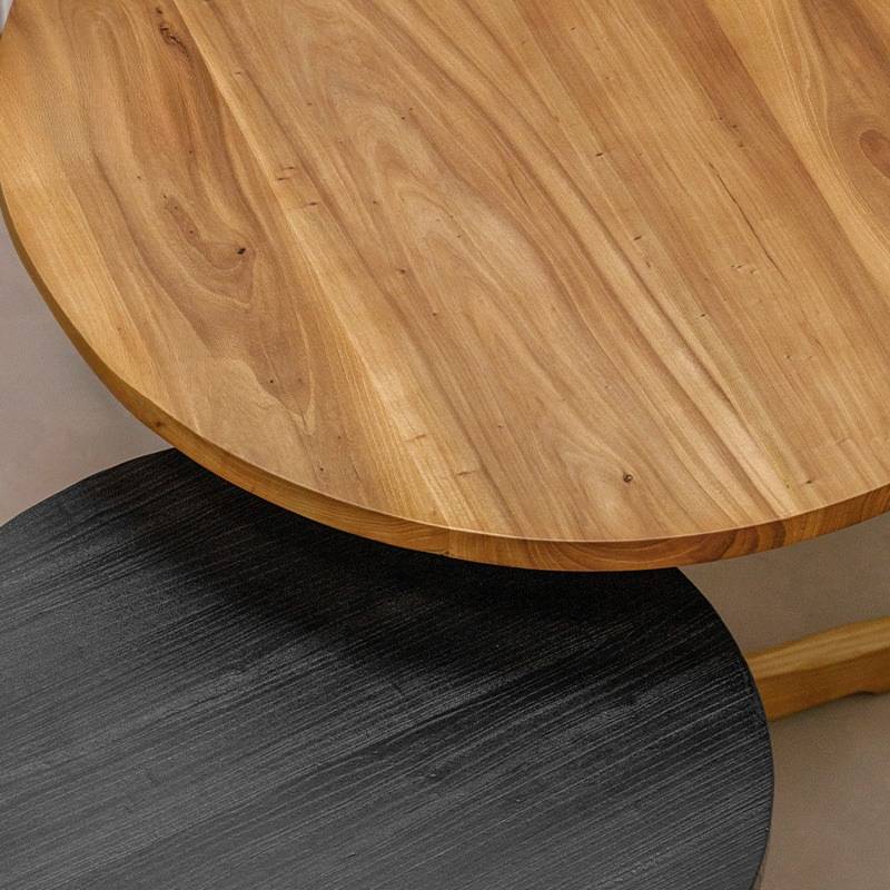 以木 商用实木圆形休闲桌食堂餐桌椅复古风原木咖啡桌子餐饮店