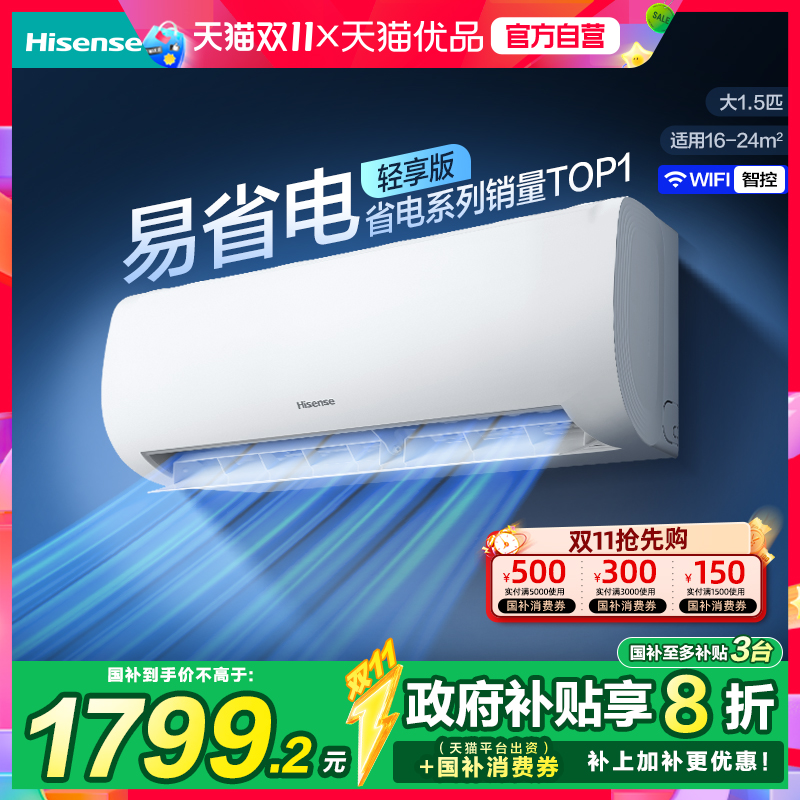 海信空调易省电轻享版大1.5匹挂机式新一级能效卧室以旧换新补贴