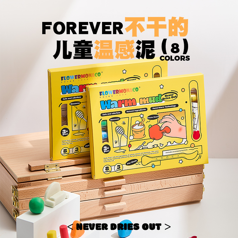 Flower Monaco花芽温感泥儿童8色安全无味橡皮泥不粘手