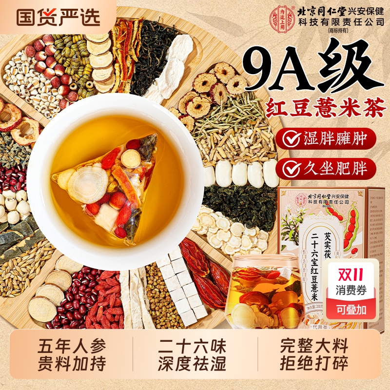 北京同仁堂茯苓红豆薏米茶减祛湿茶肥排毒体内去湿寒健脾调理正品