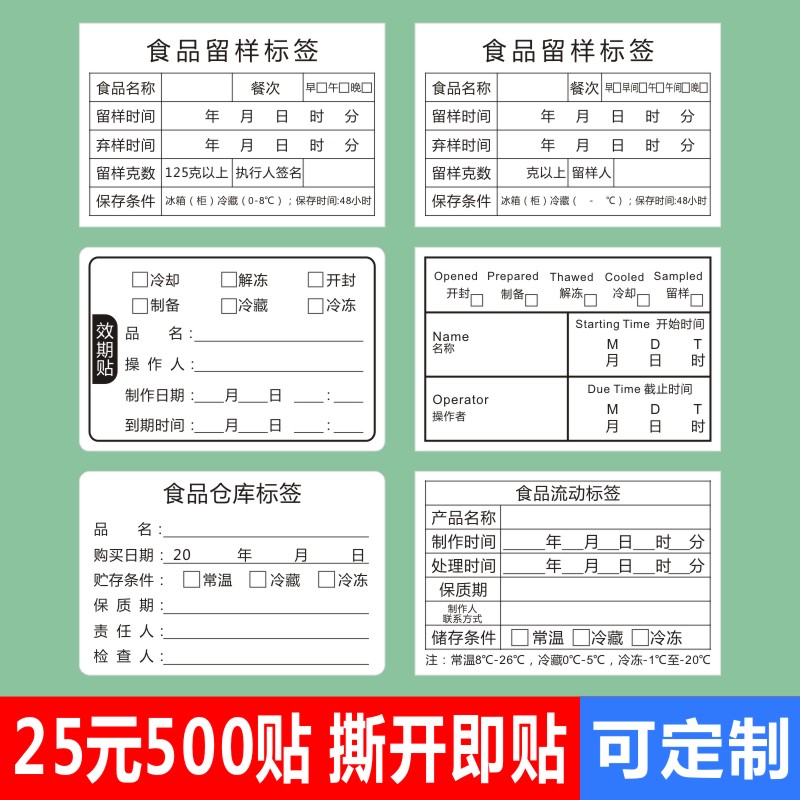 生产日期贴纸开封制o作留样时间不干胶 烘焙食品效期表保质期标签