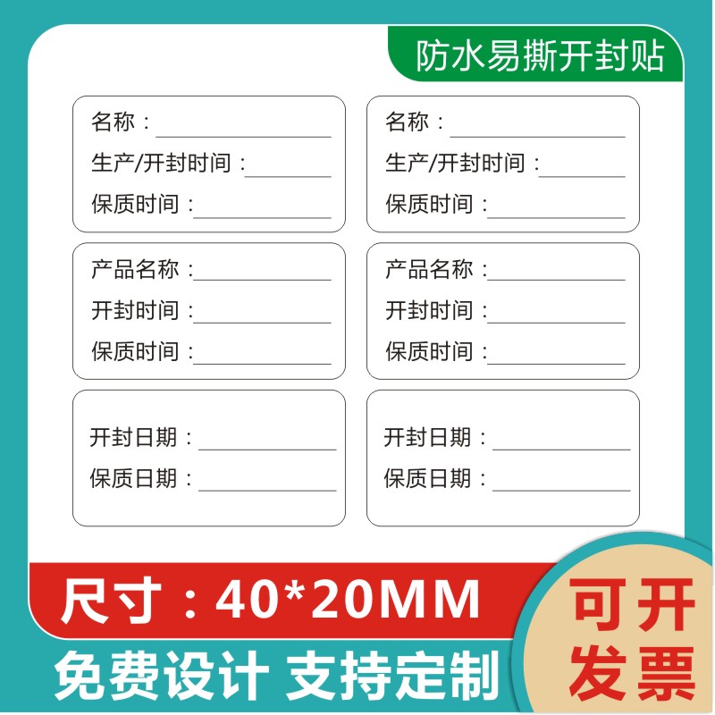 化妆品开封启用贴纸冷藏保质期生产标签制作日期食品效期防水亚银