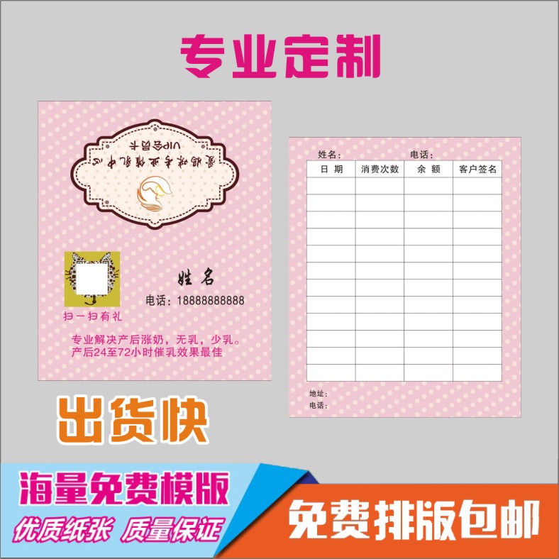 小儿推拿店名片设计婴儿会员卡记次卡印刷幼儿童成长中心计次制作