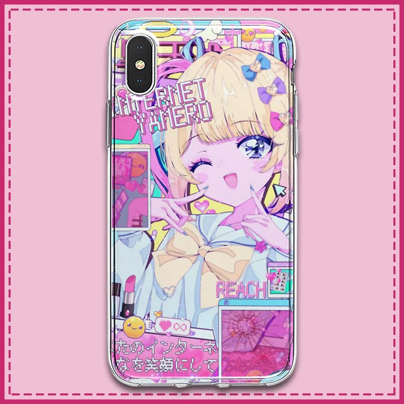 主播女孩重度依赖超天酱直边手机壳适用OPPO苹果华为小米vivo
