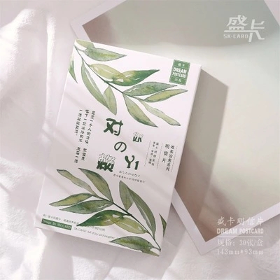 创意明信片唯美爱情对你的依赖爱情植物树叶绿色系卡片贺卡30张