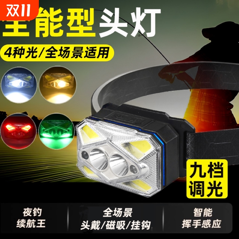 LED强光超亮头灯续航钓鱼专用超轻感应LED可充电便携式充电头戴
