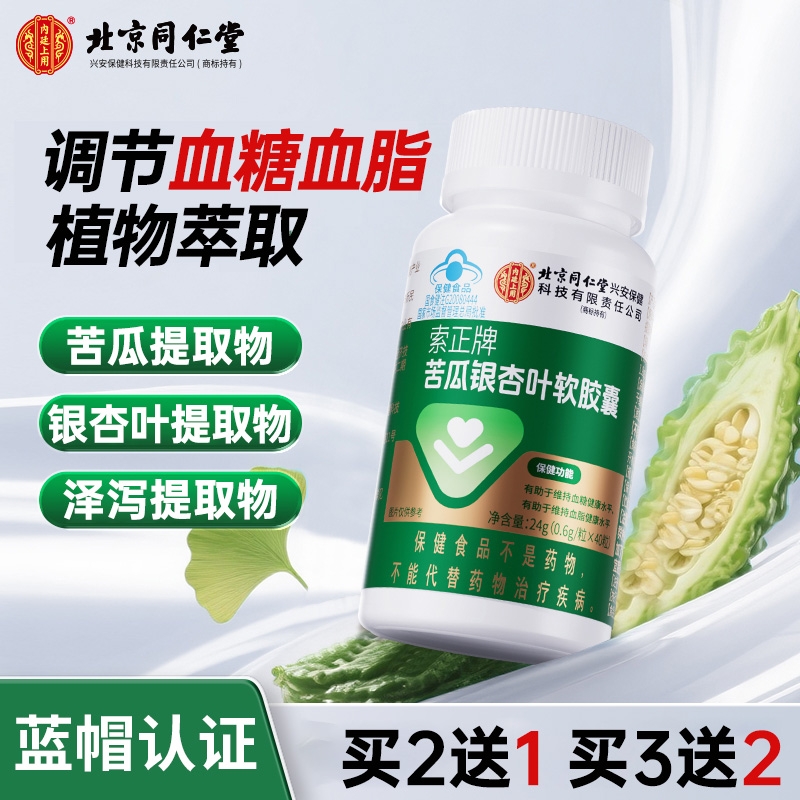 北京同仁堂苦瓜银杏叶软胶囊中老年保健调节血糖血脂官方正品旗舰