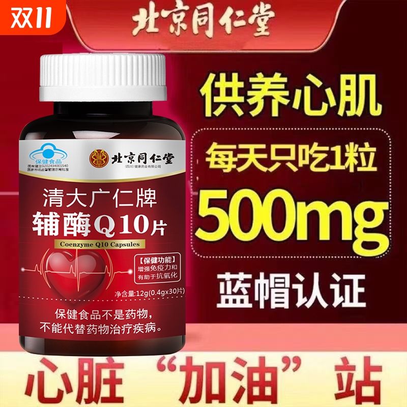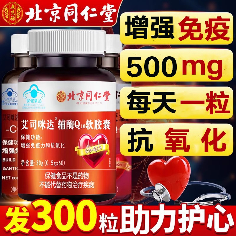 辅酶q10北京同仁堂软胶囊官方旗舰店正品国产扣十保健品心脏秋实