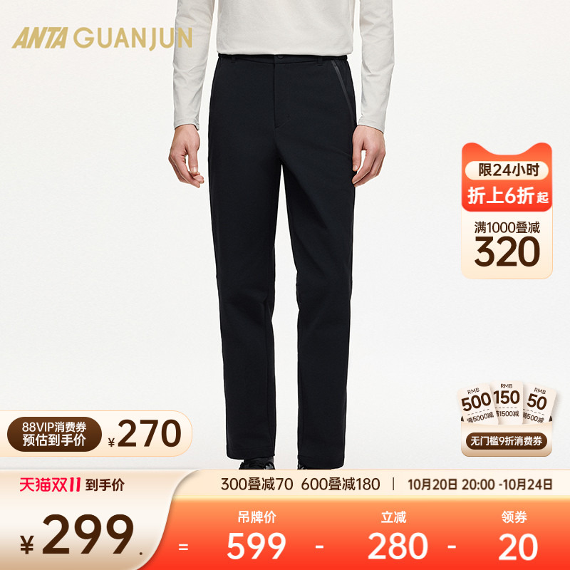安踏冠军全天候系列 行政通勤男加绒防泼水亲肤梭织长裤152540