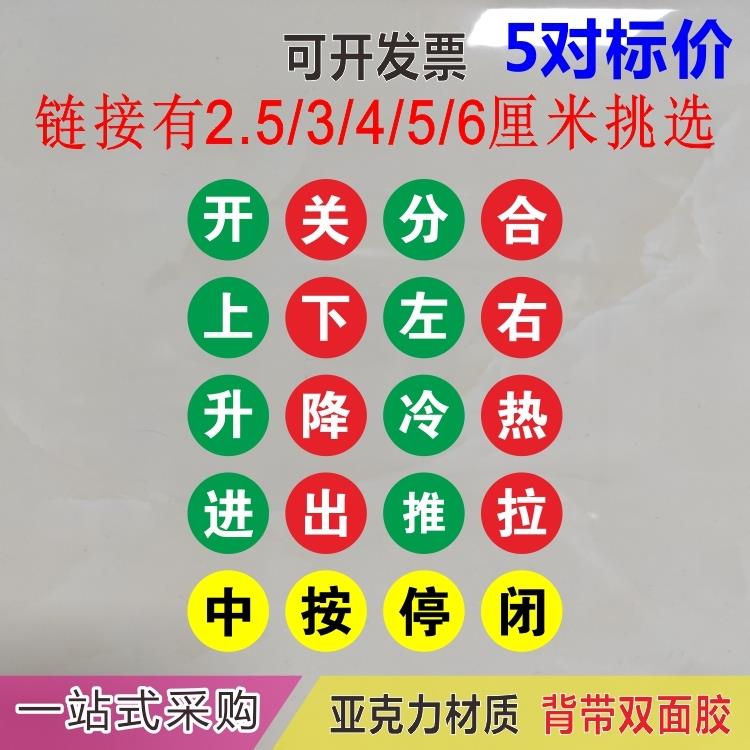 亚克力开关上下分合闸标签提示牌机械设备升降进出左右中按停贴牌