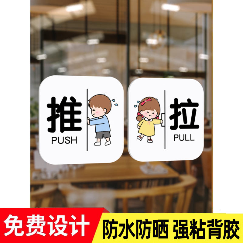 极速新克力玻璃推拉牌推拉门牌贴纸推C拉标志牌定制大.门左右移门