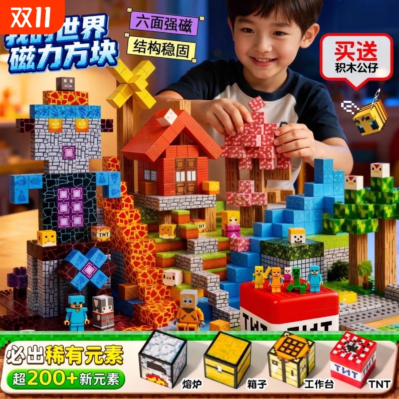 我的世界磁力方块积木全套正版儿童益智拼装磁吸铁小玩具男孩拼图