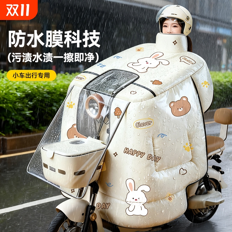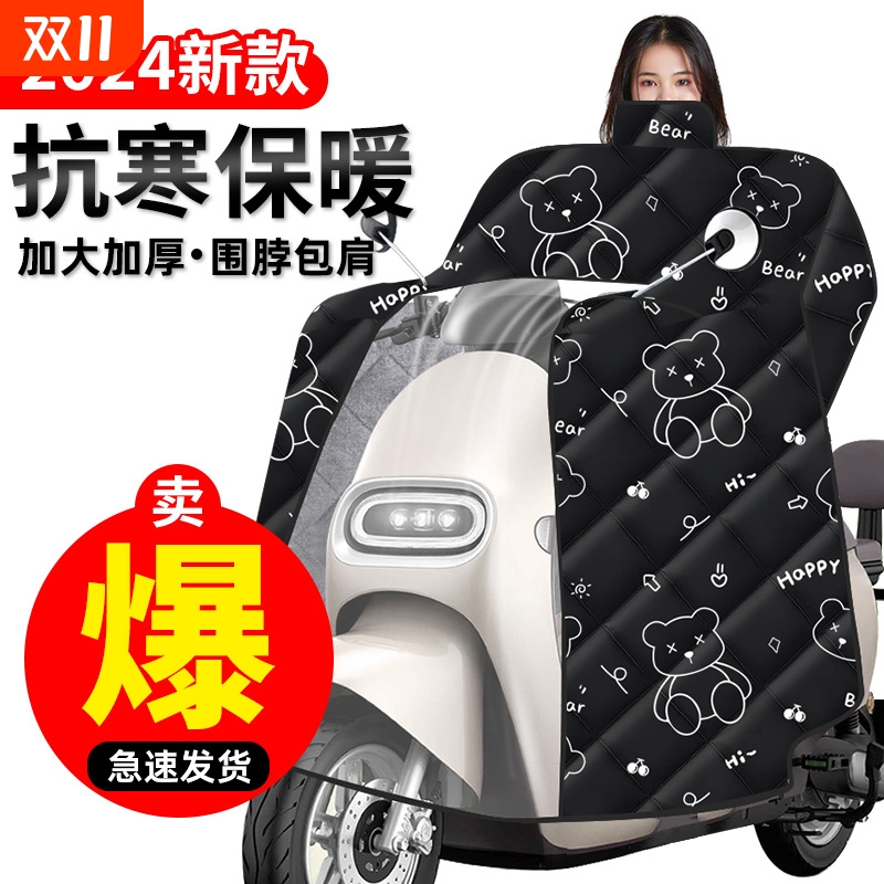 电动车挡风被冬季全包防晒防雨水罩加大加绒加厚电瓶摩托车斗篷式