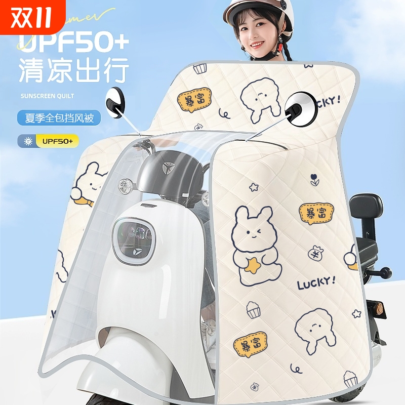 电动车挡风被夏季全包防晒遮阳罩电瓶摩托车四季通用防水防风薄款