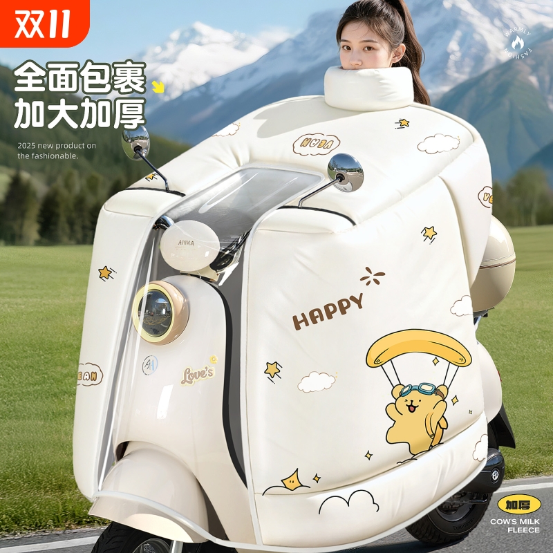 电动车挡风被冬季加绒加厚2025新款全包电瓶车摩托防水罩四季通用