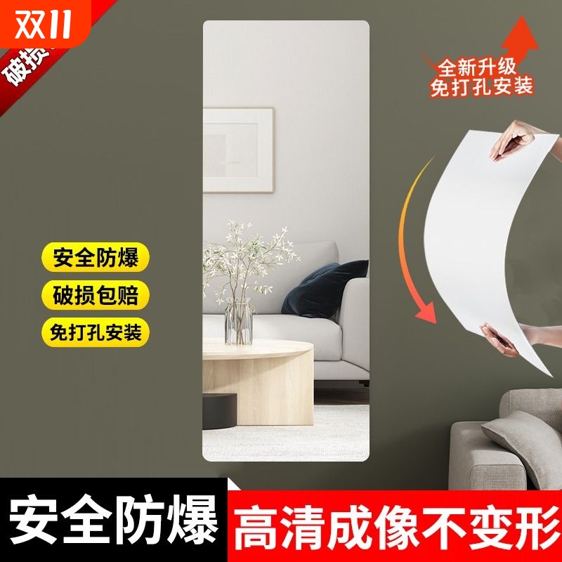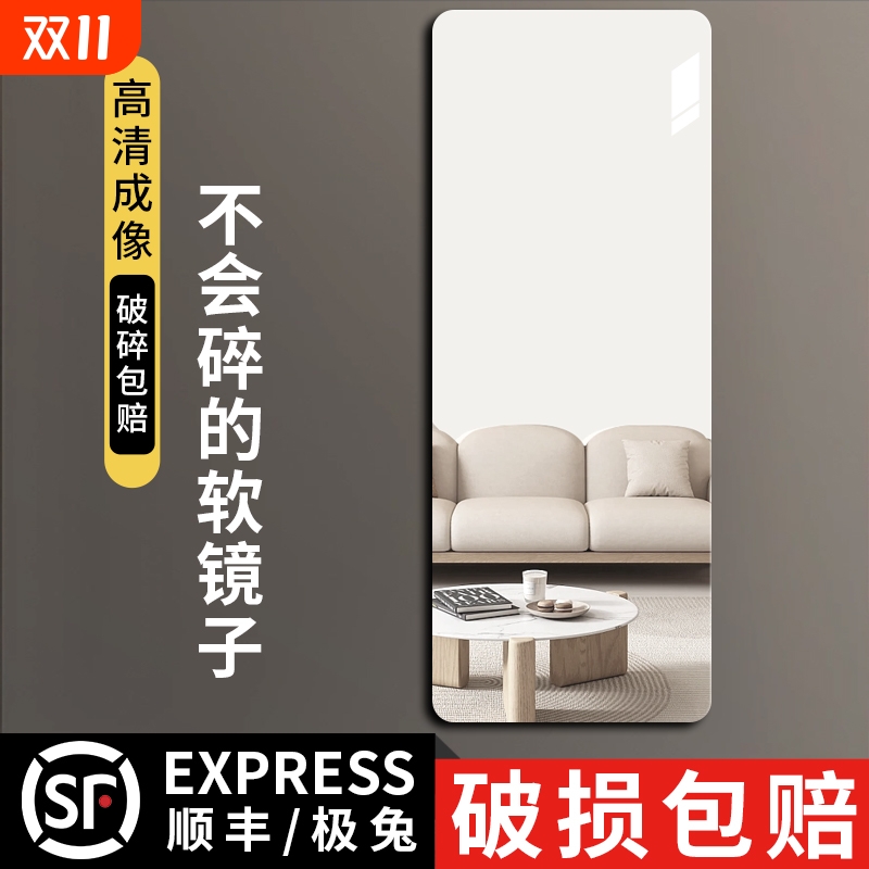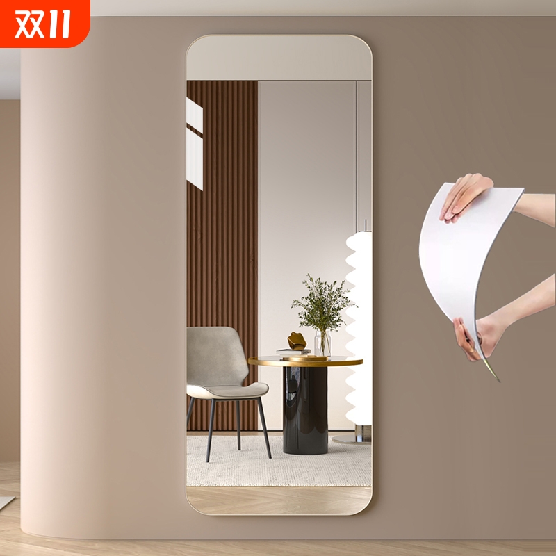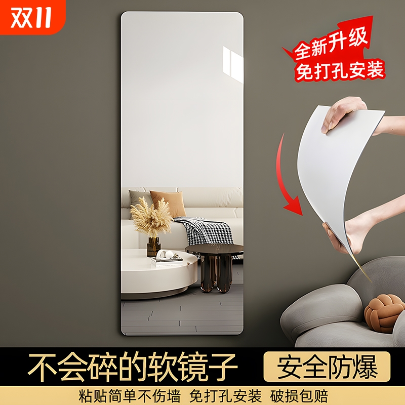 软镜子贴墙自粘亚克力全身穿衣镜高清家用墙面粘贴镜面贴纸试衣镜