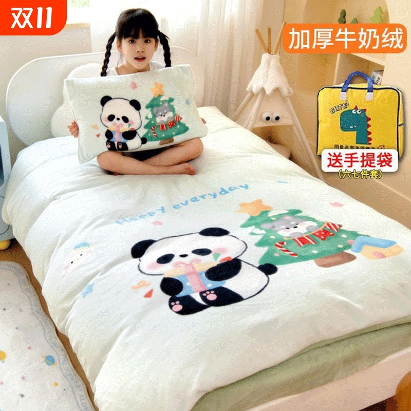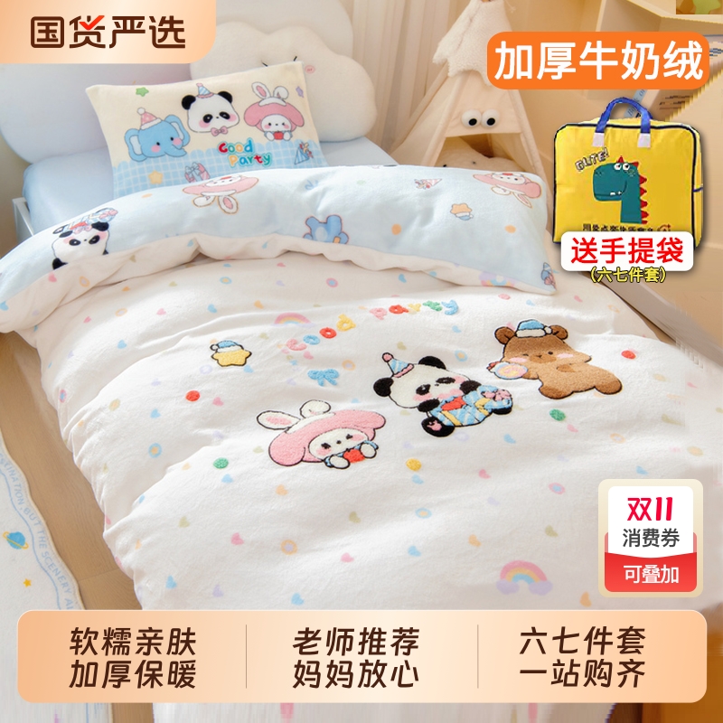 花花公子幼儿园牛奶绒被子三件套加厚冬季宝宝入园午睡六件套被褥