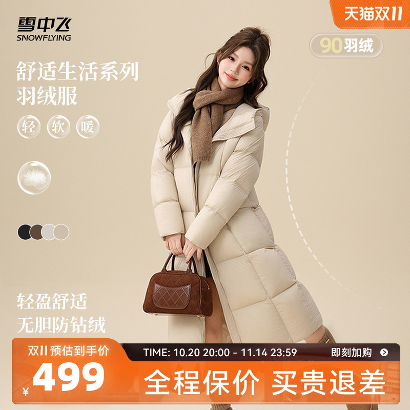 【高智泡芙】雪中飞2025冬新款女士长款羽绒服六格加厚柔软舒适