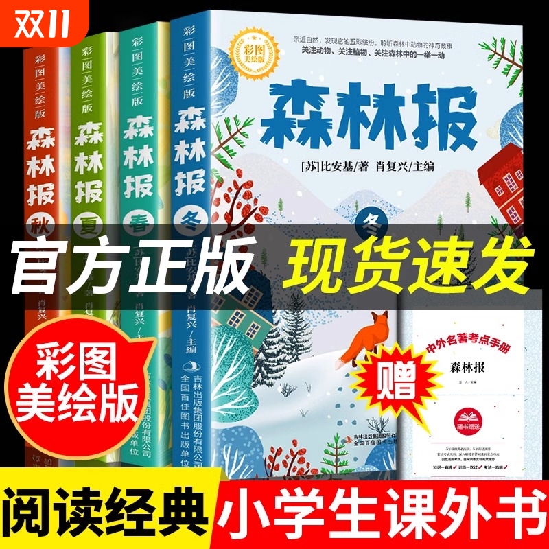 正版 森林报春夏秋冬全四册彩色版 三四年级五六年级小学生课外阅读