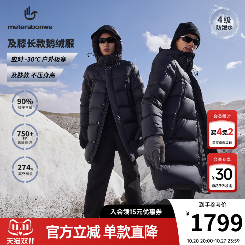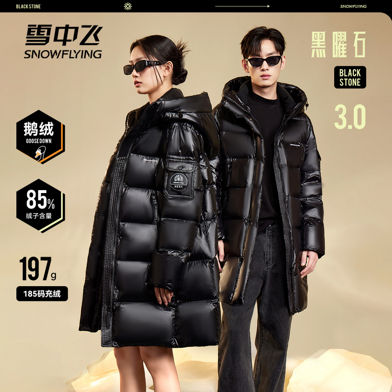 【黑曜石鹅绒服】雪中飞25冬新款男女情侣六格中长款羽绒服加厚