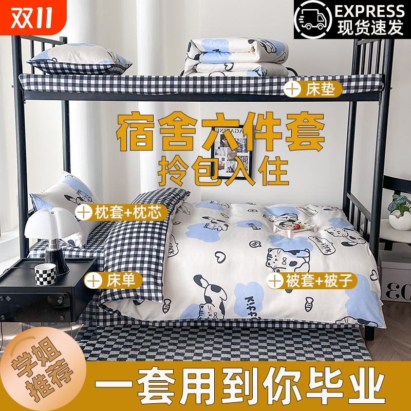 被子全套学生宿舍被套六件套空调被加厚保暖冬被套件格子双人印花