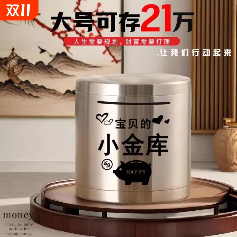 存钱罐只进不出2025新款储存罐储钱罐女孩储蓄男孩不锈钢儿童20