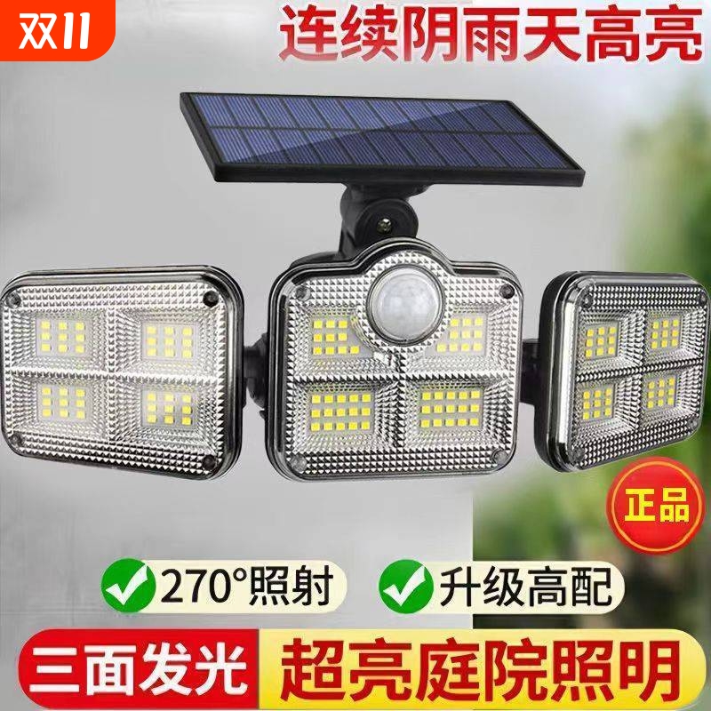 太阳能分体三头壁灯爆亮家用户外墙壁路灯防水人体感应庭院照明灯