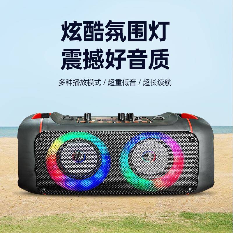 新款炫彩蓝音箱户牙外大音量低音炮无线插卡双喇叭重低音音响跨境