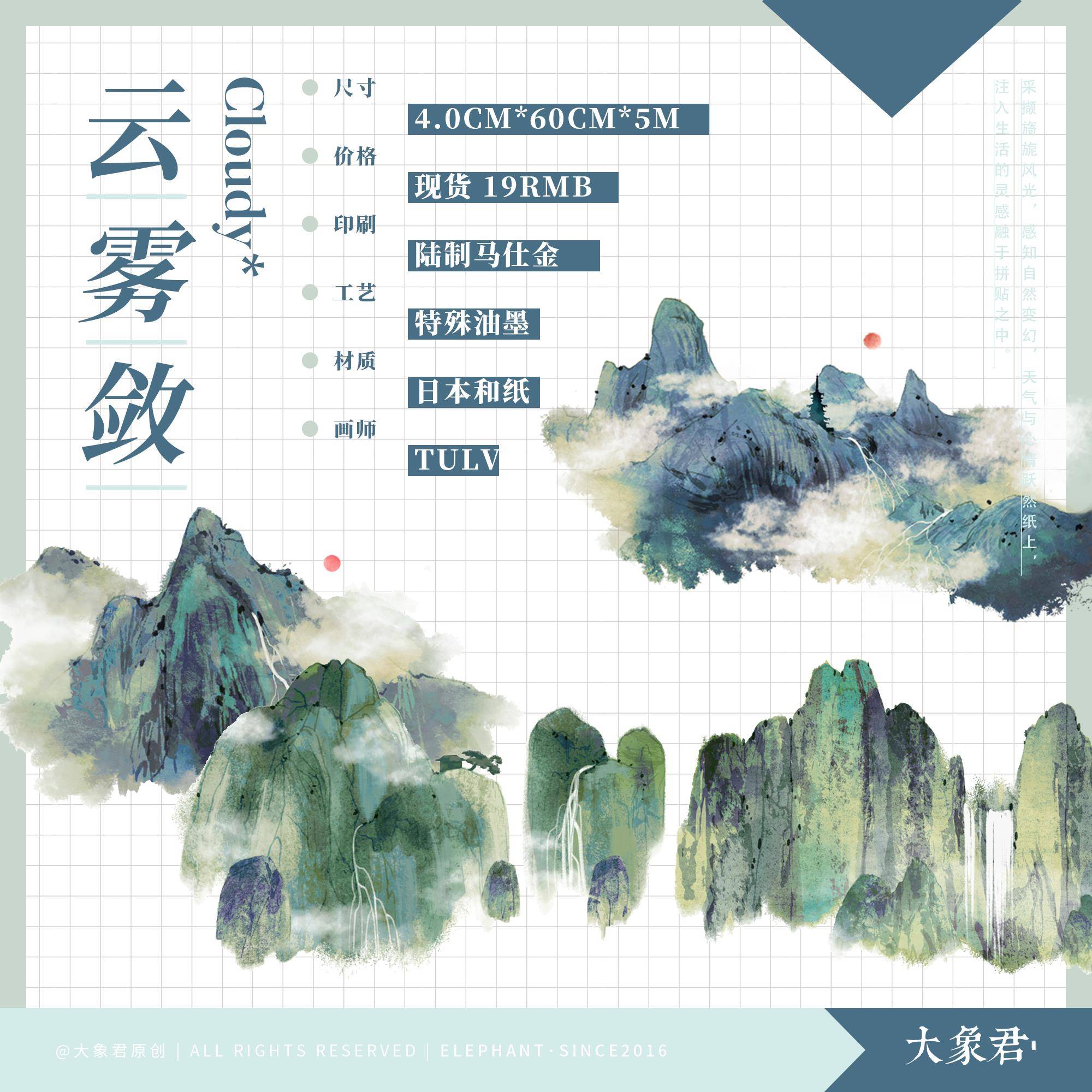大象君 和纸胶带 云雾敛 陆制5m特殊油墨+离型纸 现货山 水墨