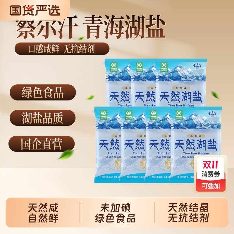 昆仑雪山天然青海湖盐家用甲状腺无抗结剂未加不加碘食用藏青食盐
