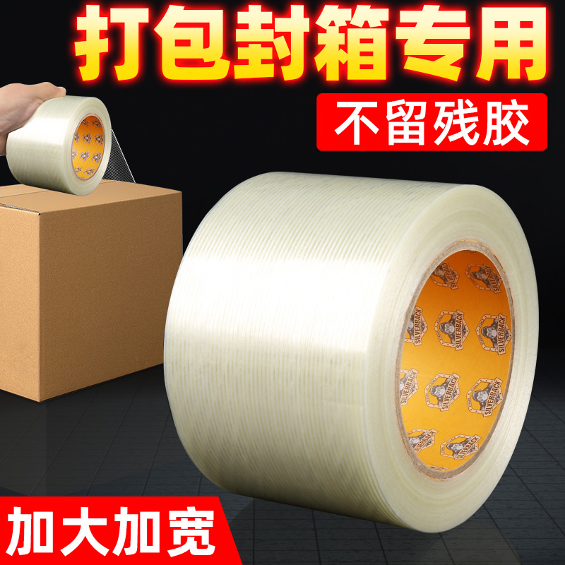 透明条纹打包胶带封箱带纤维无痕不留残胶搬家固定冰箱电脑纸箱强力高