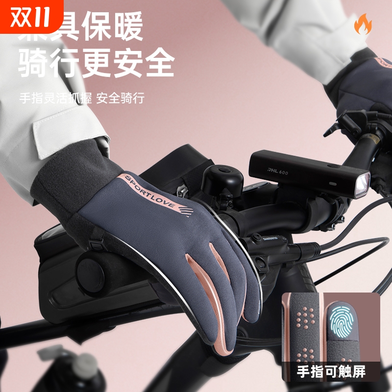 保暖骑行手套女冬季防风防寒防滑触屏冬天骑车电动车加绒加厚手套