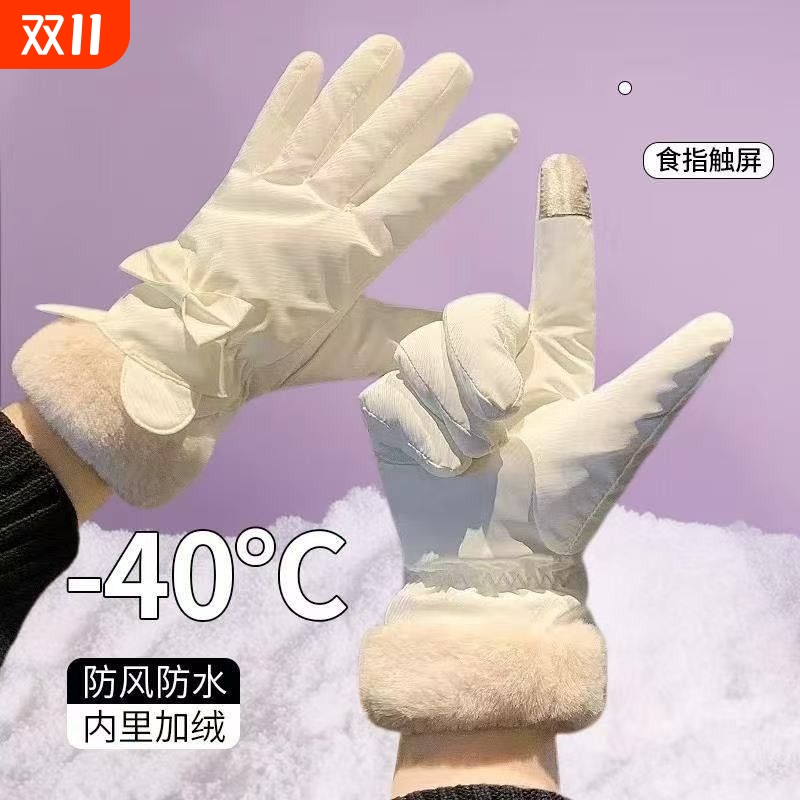 新款骑行手套女冬季保暖防风骑电动车滑雪防水加绒加厚防寒可触屏