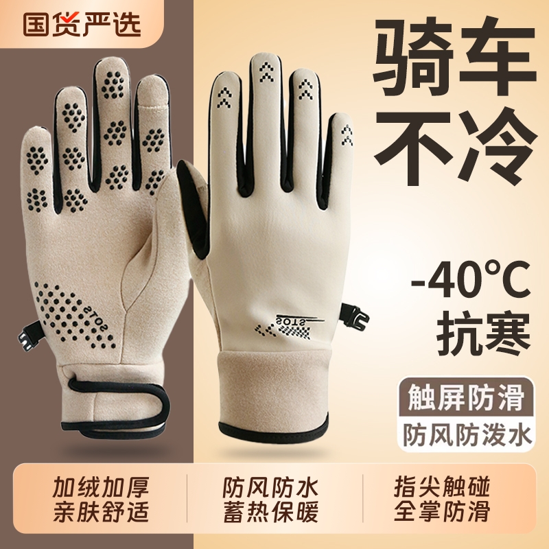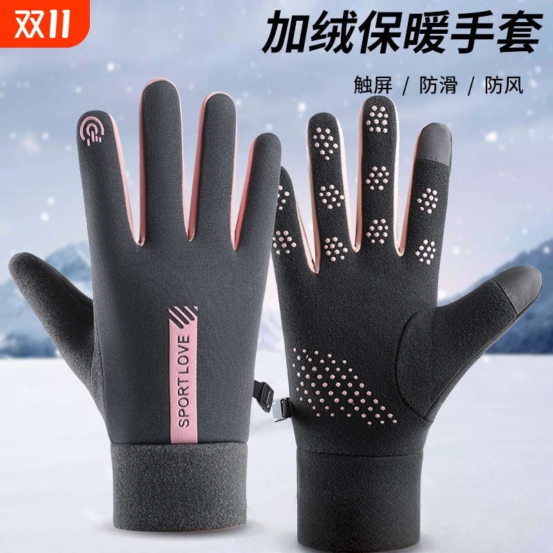 2025新款手套女秋冬季触屏加绒加厚滑雪电动车保暖御寒骑行手套男
