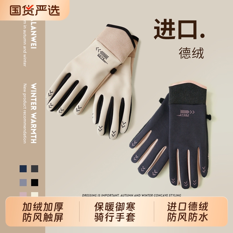手套薄款女冬天春秋款德绒棉弹力骑车防风保暖加绒防寒触屏电动车