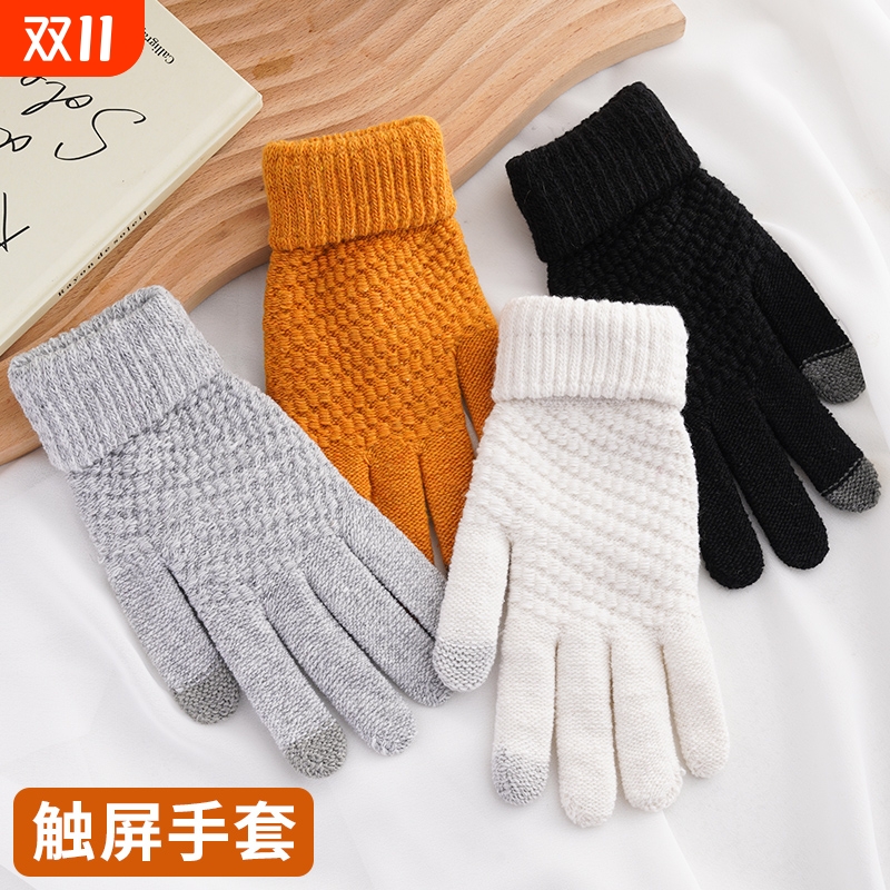 手套可爱保暖加绒防寒韩版学生触屏针织提花男骑行黑色白色灰色
