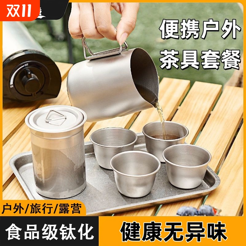 户外不锈钢露营茶具快客杯钛化合金茶水分离泡茶器旅行套装中国风