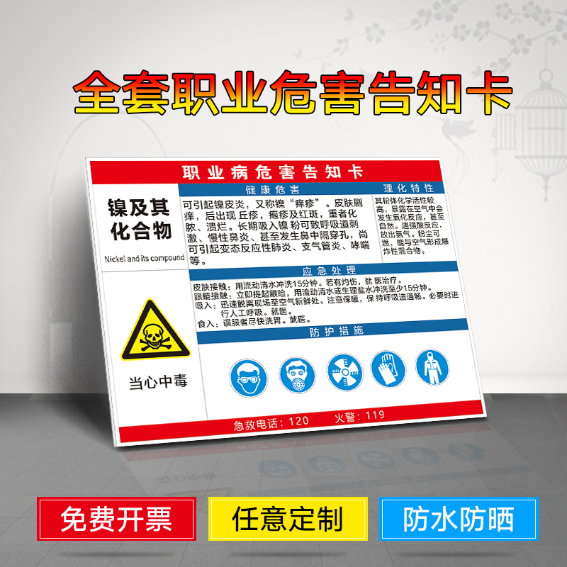 镍及其化合物职业危害告知卡 告知牌 警示牌 标识牌 牌子 职业病