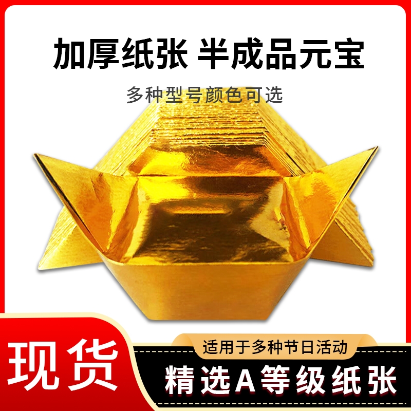 金元宝半成品1000个银元宝手工折纸金纸加厚切角半成品元宝免折叠