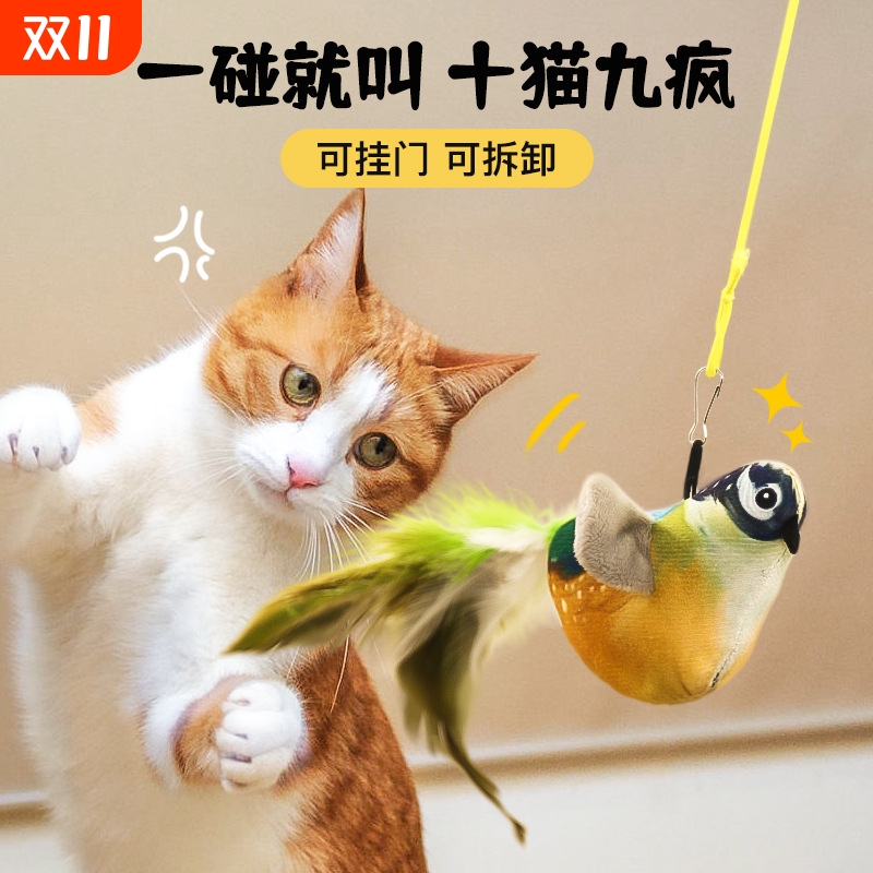 猫咪玩具悬挂逗猫棒仿真会叫小鸟荡秋千幼猫解闷神器宠物发声鸟叫