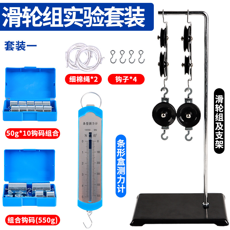 全套滑轮组及支架教具金属钩码条形盒测力计初中物理力学实验器材