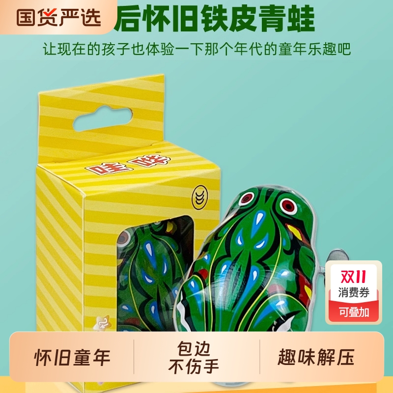 儿童铁皮青蛙发条玩具80后90怀旧上弦跳跳蛙小鸡弹跳弹力球夜光
