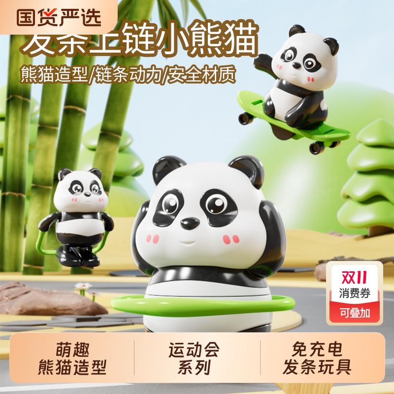 熊猫运动会系列上链发条玩具滑板呼啦圈跳绳宝宝学爬抬头训练摆件