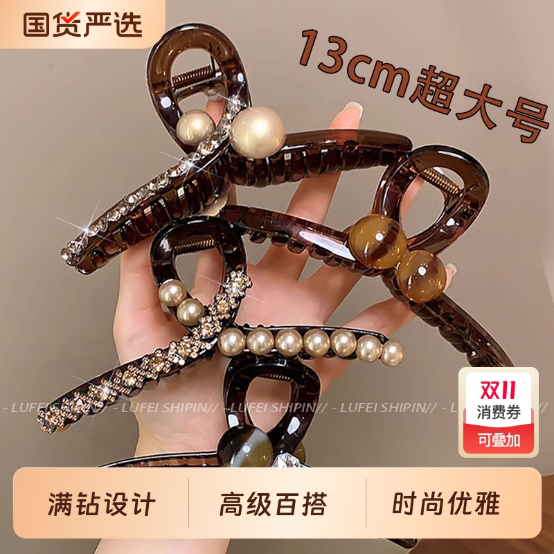 爆款小众黑色波点ins高级简约气质后脑勺鲨鱼半扎发夹弹簧抓发饰