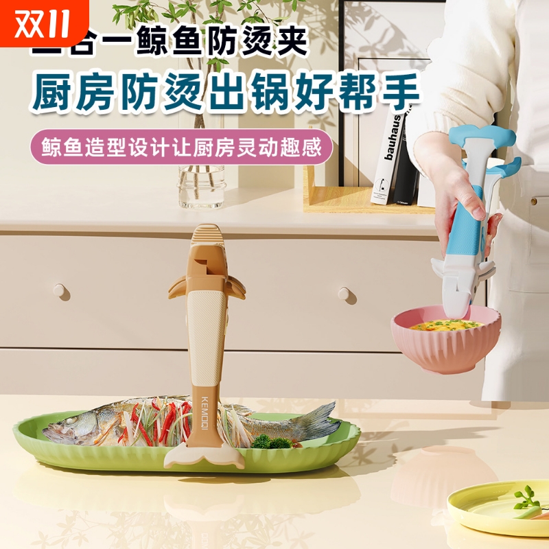 厨房专用二合一鲸鱼防烫夹硅胶防滑提盘器蒸锅蒸菜取碗夹盘子神器
