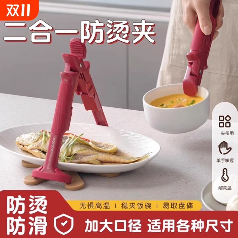 厨房神器二合一防烫夹夹碗取碗夹菜钳提盘器耐高温烤盘蒸锅夹防滑