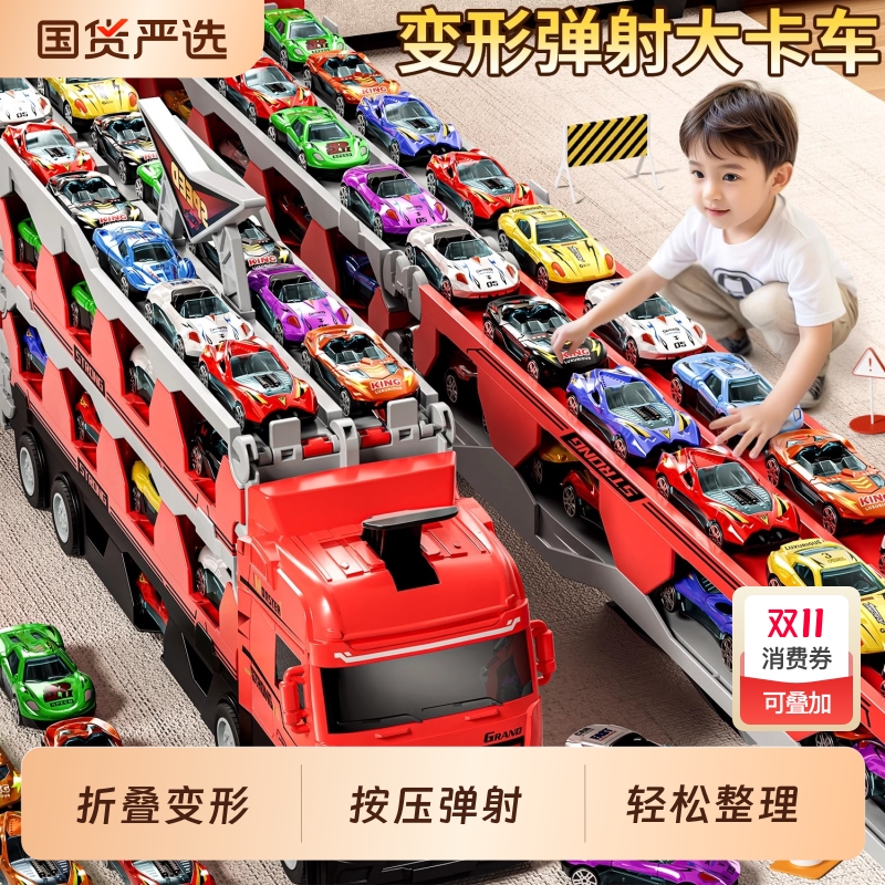 儿童轨道玩具车爆款货柜车变形弹射合金小汽车男孩2025新款玩具车