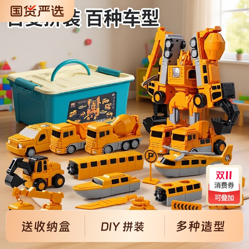 加大号变形拖车工程车合金小汽车儿童玩具车男孩礼物大货车小车