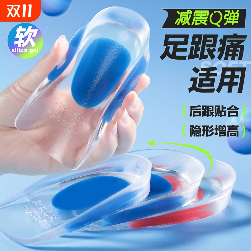 u型鞋垫硅胶足底脚跟疼痛半码鞋垫减震脚后跟超软足跟痛专用鞋垫